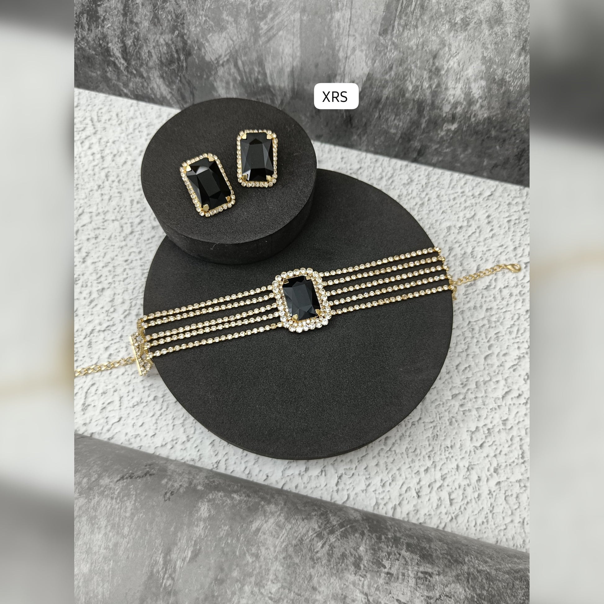 Finely hand-crafted with zirconia stones, our Ariel choker and stud set is sure to steal the spotlight with its intricate work and plating shimmer and all those golden tone look. This set will give your western ensembles a flawlessly beautiful look.
