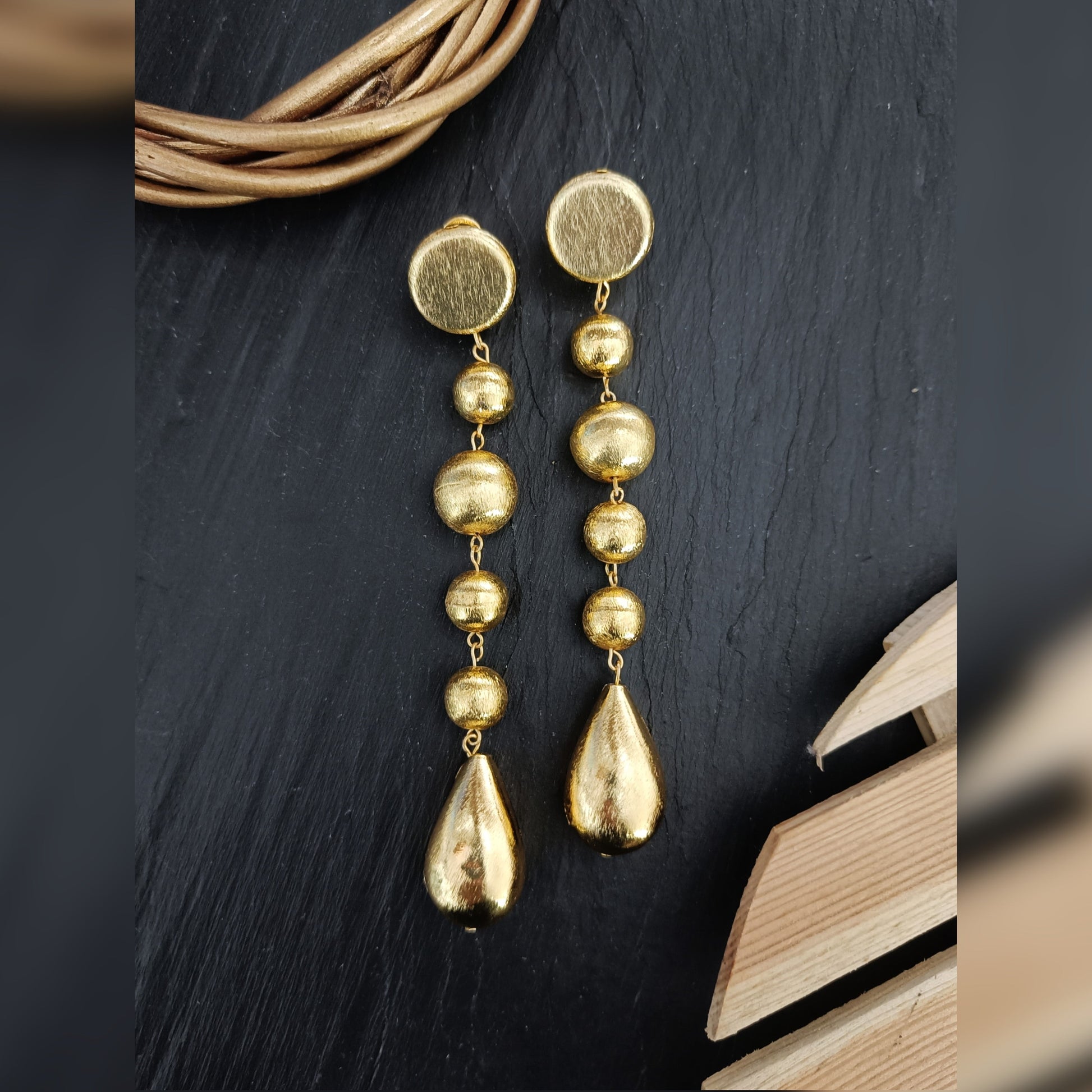 The hanging golden drop earring is a blend of elegance and charm, crafted with intricate detail. They feature delicately shaped golden charms suspended from hooks, creating a graceful movement that reflects light. Suitable for various occasions, these earrings add a playful yet refined touch to any outfit, making them a timeless and cherished accessory.