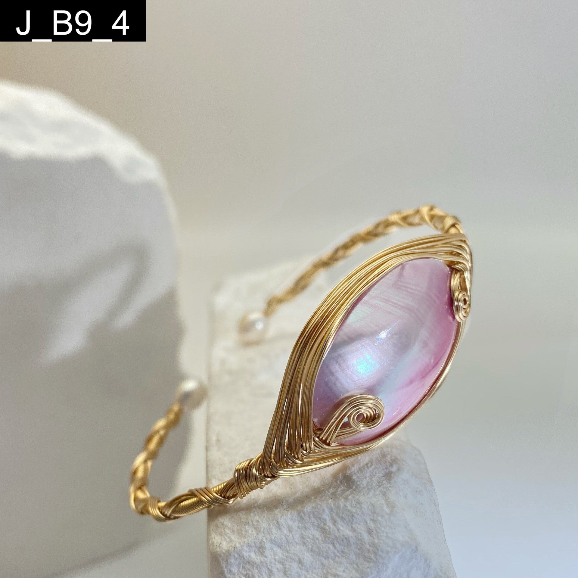 The Filigree Garden Bracelet Collection: Wearable art crafted from earth and gold. This exquisite collection of adjustable open cuffs showcases superior artisan technique. Each piece features a twisted, gold-toned wire band that is intricately wrapped to secure unique, organic focal points. Designs feature luminous baroque pearls, shimmering mother-of-pearl shell, and a variety of natural colored stones. Perfect for those who appreciate handcrafted luxury, these cuffs blend natural, organic beauty with dazzling, metallic elegance.
