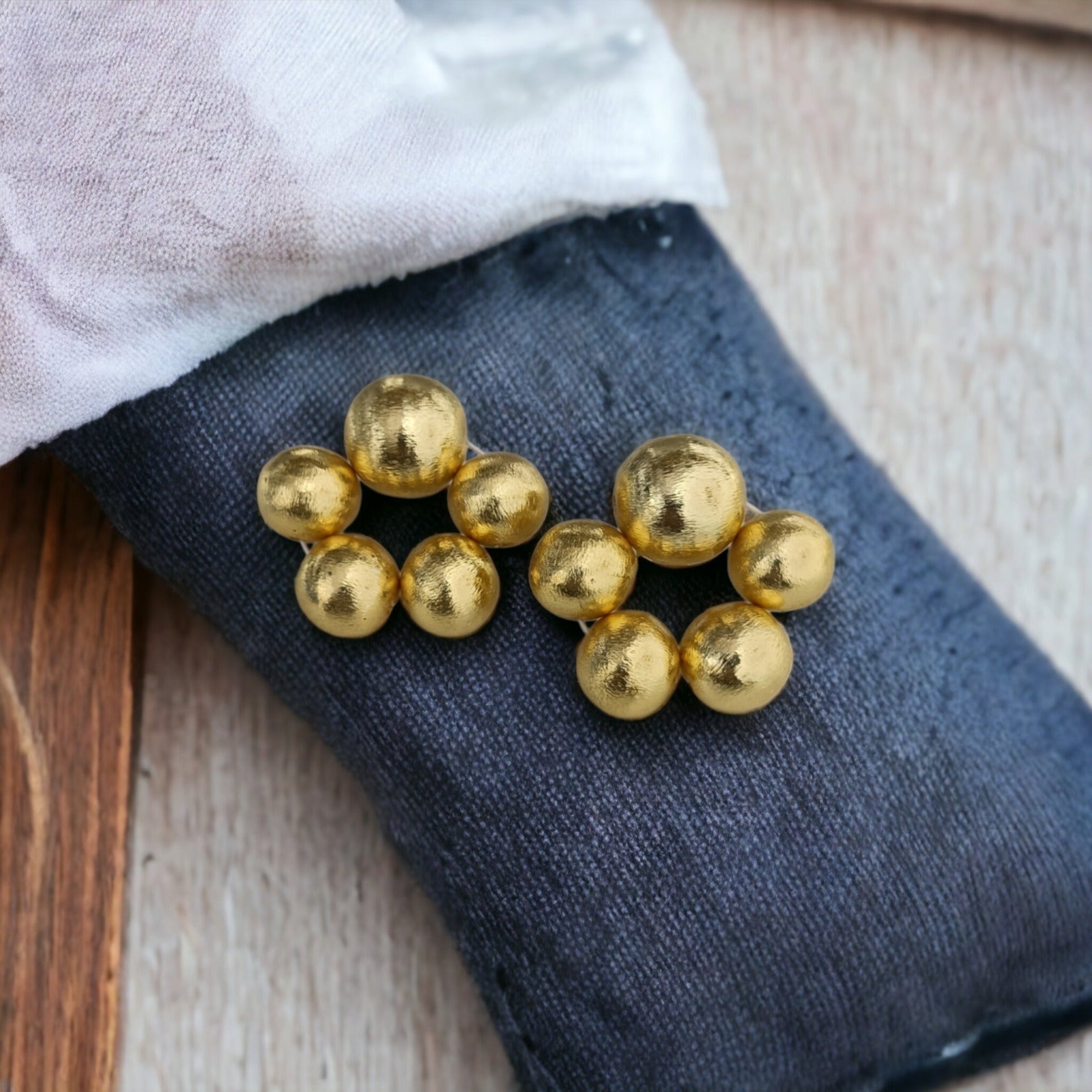 These exquisite golden floral ball hoop earrings seamlessly blend elegance and nature-inspired beauty. Crafted with meticulous craftsmanship, they embody a unique design that captures the essence of both luxury and the natural world.