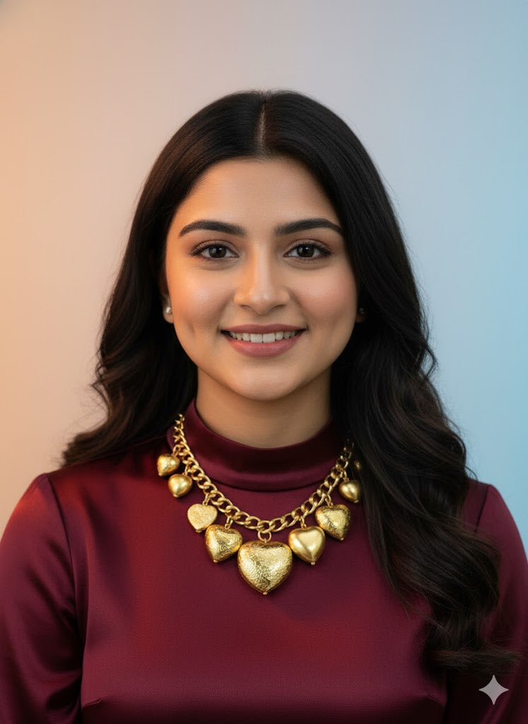This exquisite golden heart necklace features a delicate chain that elegantly complements the charms, making it a perfect accessory for any occasion. The necklace is designed to add a touch of sophistication and charm to your ensemble.