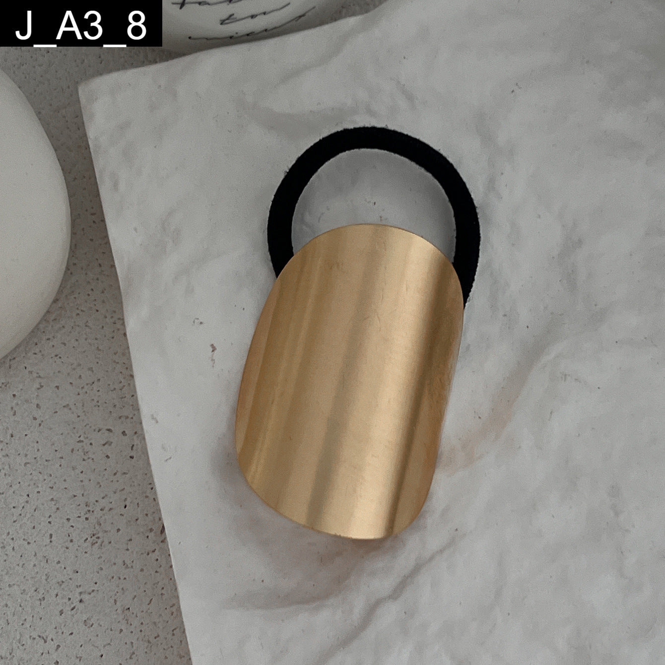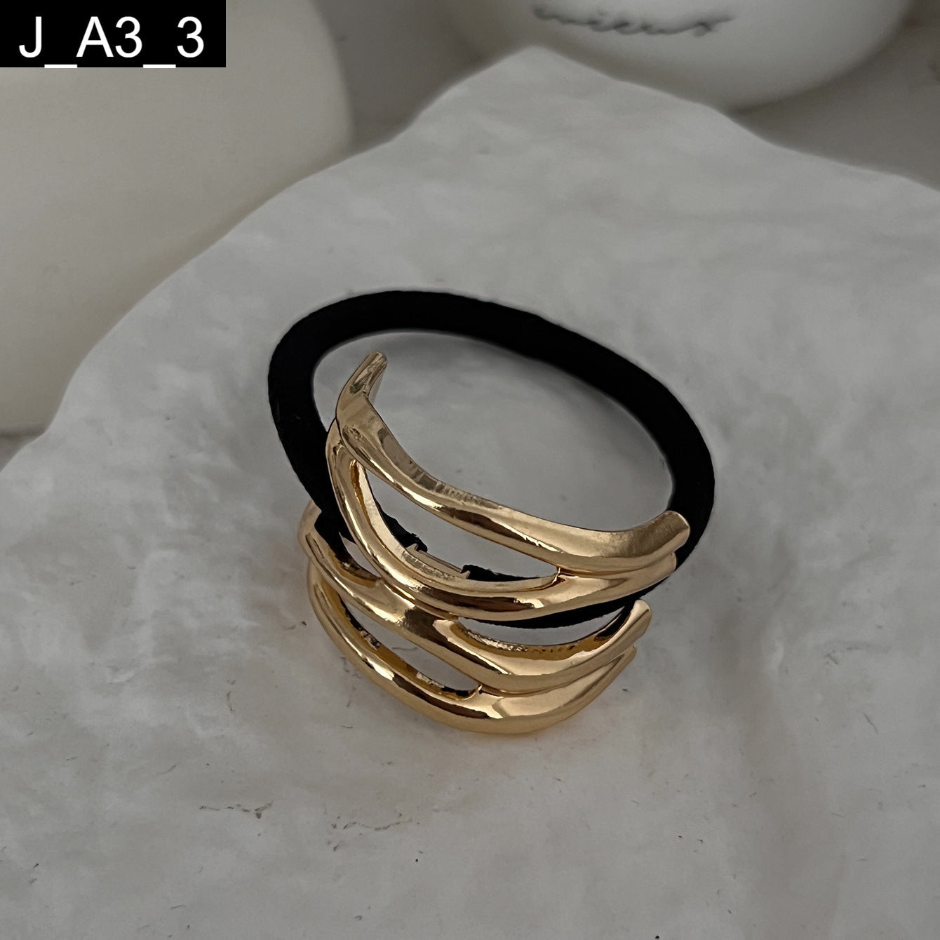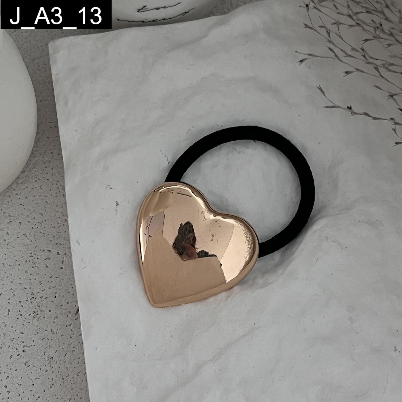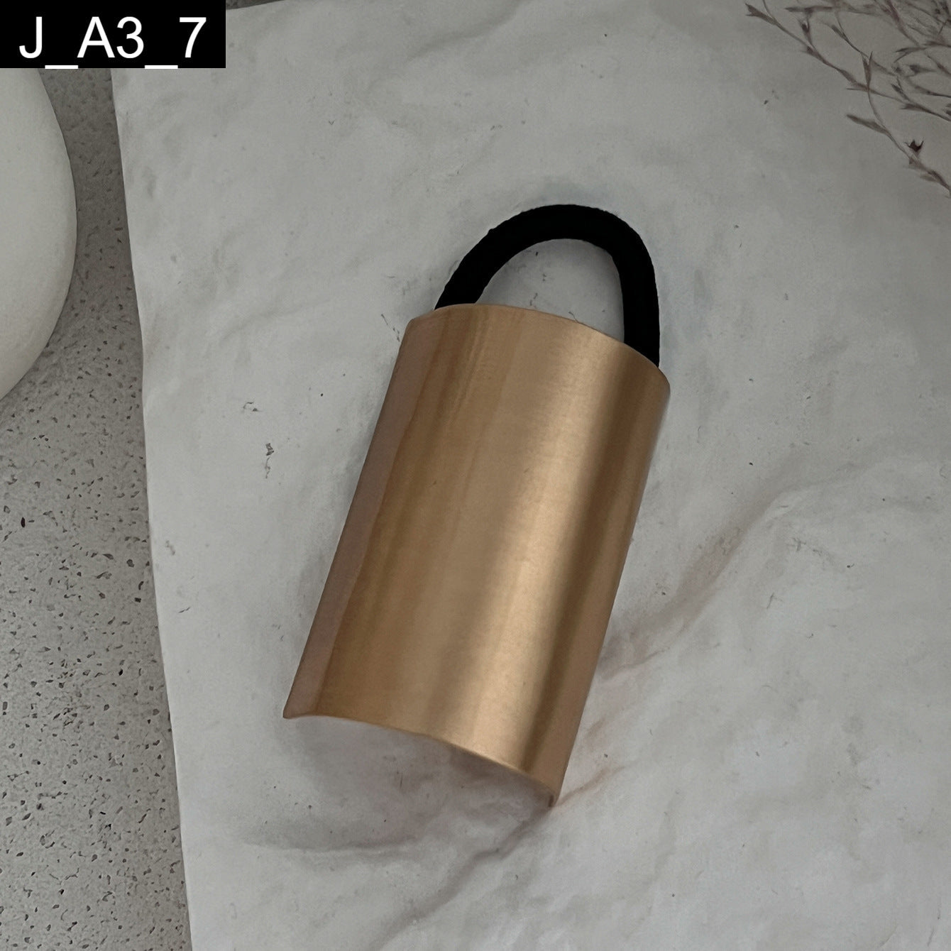 The Luxe Ponytail Wraps: Instant, high-shine sophistication for your style. This collection features various sculptural gold-toned metal accents designed to seamlessly dress up your ponytail or braid. Choose from wide, minimalist cylinder cuffs, intricate coiled wraps, or delicate ribbon and heart charms. Each piece offers a luminous, high-polish finish that adds a touch of effortless luxury and modern structure to any simple hairstyle.