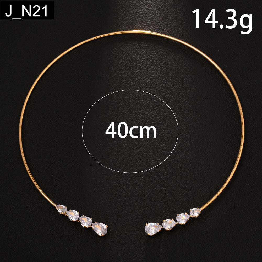 Starlight Halo Choker: A piece of minimalist luxury that adds a sophisticated gleam to your neckline. This elegant open choker features a sleek, rigid band that gracefully embraces the base of the neck. Adorning each open end are a series of perfectly graduated, pear-cut crystals that sparkle like fresh dewdrops. Available in both classic silver and warm gold tones, this necklace is designed for the modern woman who appreciates understated elegance and brilliant craftsmanship. Perfect for open necklines or to add subtle shine to any outfit. Sophistication, unfastened.
